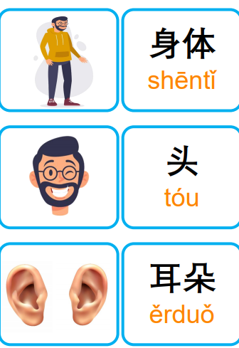 Thẻ Flashcard tiếng Trung chủ đề về các bộ phận cơ thể và khuôn mặt – bao gồm từ vựng với chữ Hán giản thể, pinyin có thanh điệu rõ ràng. Đây là tài liệu lý tưởng để giảng dạy từ vựng tiếng Trung, sử dụng cho trang trí lớp học, hoạt động ghép đôi, trò chơi nhóm, hoặc làm bảng treo tường sinh động. Phù hợp cho cả trẻ em và người học ở mọi trình độ.