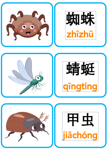 Thẻ Flashcard tiếng Trung chủ đề về Côn trùng và động vật nhỏ – bao gồm từ vựng với chữ Hán giản thể, pinyin có thanh điệu rõ ràng. Đây là tài liệu lý tưởng để giảng dạy từ vựng tiếng Trung, sử dụng cho trang trí lớp học, hoạt động ghép đôi, trò chơi nhóm, hoặc làm bảng treo tường sinh động. Phù hợp cho cả trẻ em và người học ở mọi trình độ!
