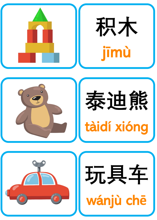 Thẻ Flashcard tiếng Trung chủ đề Đồ chơi – bao gồm từ vựng với chữ Hán giản thể, pinyin có thanh điệu rõ ràng. Đây là tài liệu lý tưởng để giảng dạy từ vựng tiếng Trung, sử dụng cho trang trí lớp học, hoạt động ghép đôi, trò chơi nhóm, hoặc làm bảng treo tường sinh động. Phù hợp cho cả trẻ em và người học ở mọi trình độ!